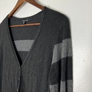 Eileen Fisher Gray Striped V-Neck Button Cardigan Sweater Size Small