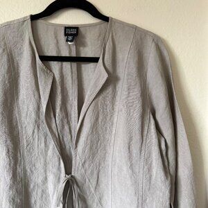 Eileen Fisher Gray Tie-Front Lightweight Linen Blend Jacket Sz Medium