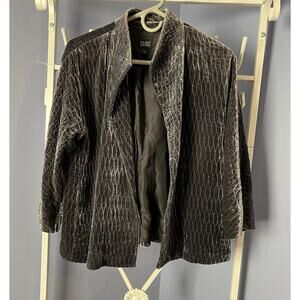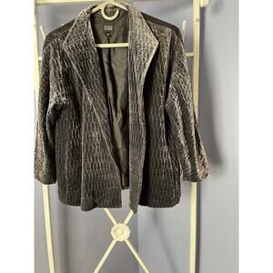 Eileen Fisher Gray Velvet Quilted Open Front Cardigan M