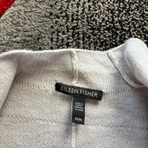 Eileen Fisher Gray Windowpane Print Open Front Long Line Cardigan