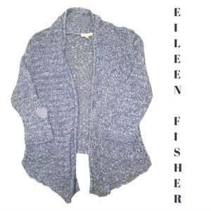 Eileen Fisher Gray-Blue Open Front Knit Cardigan Heart on Sleeve Size XS