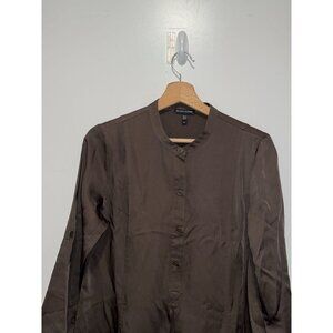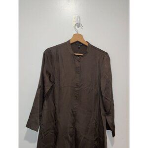 Eileen Fisher Brown Tencel Relaxed Fit Button-Up Tunic Midi Dress Women's Size S