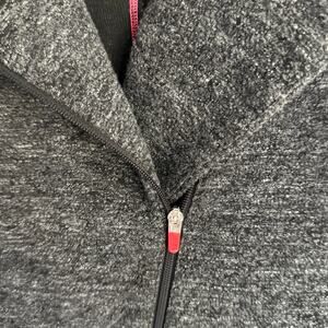 Eileen Fisher static stretch jacquard vest with red sporty back topstitching and red zipper tips