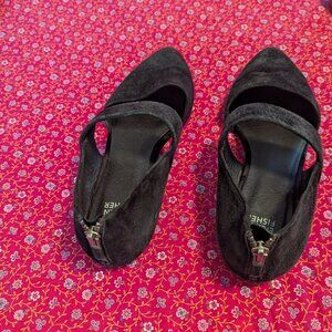 Eileen Fisher Hall Suede Point Toe Flat Mary Jane Black Leather Minimal Good condition, pointed toe flats with back zipper heel closure. US women’s size 8 Flat Loafer Mary Jane Minimal Minimalist Preppy Coquette Girl Preppy Prep Romantic Soft Aesthetics Soft Girl Dreamy Fem Girly Girl Era Feminine Coastal Grandma Boho Bohemian Lagenlook Leather Office