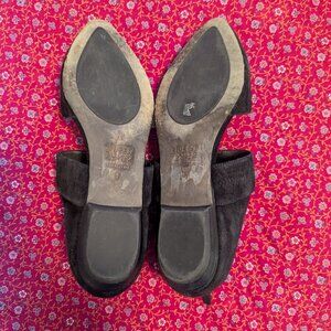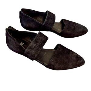 Eileen Fisher Hall Suede Point Toe Flat Mary Jane Black Size 8 Leather Minimal