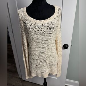 Eileen Fisher Hand Knit Ivory Sweater Large Cotton Blend Textured scoop