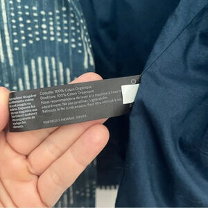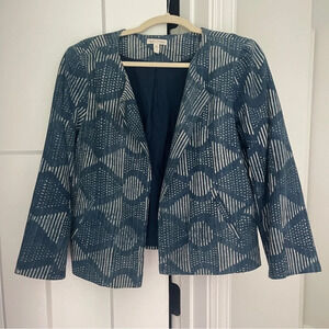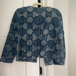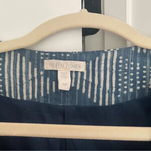 Eileen Fisher Hand-Printed Indigo Organic Cotton Round Neck Jacket Blue