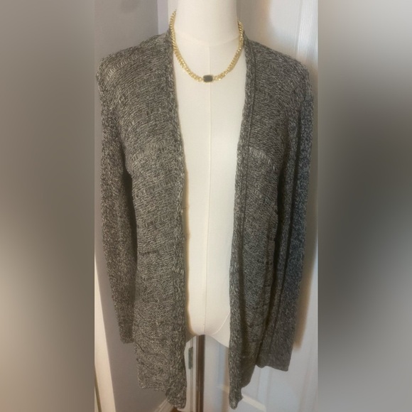 Eileen Fisher charcoal and light gray knit cardigan. Perfect for layering. Soft and comfortable.