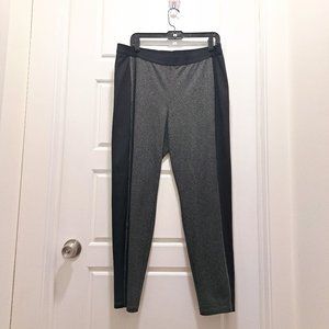Comfortable classic slim Eileen Fisher leggings with herringbone pattern.