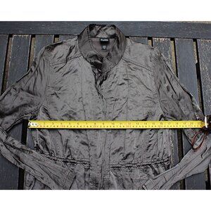 Eileen Fisher - High Collar Steel Satin Jacket in Charcoal Grey, size Medium (Oversized).