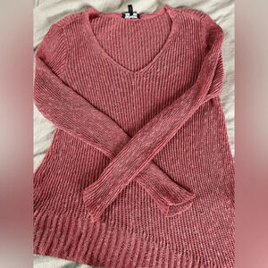 Eileen fisher long sleeve sweater with high-low hem line. V neck neckline. Pink/salmon color. 45% linen, 29% cotton, 14% nylon, 12% rayon. In excellent condition. Size women’s medium. Approximate measurements: