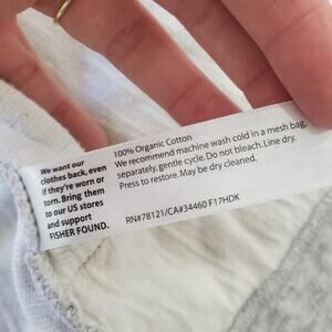 Tag note mentions the brand's circular program: "We want our clothes back... and support FISHER FOUND."