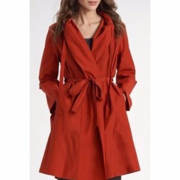 Eileen Fisher Hooded Lightweight A-Line Coat Jacket Red Orange SZ M