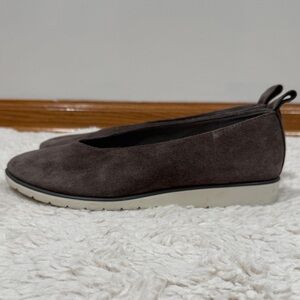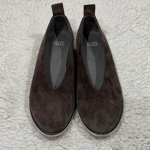 Eileen Fisher Humor Graphite Suede Slip on Flats Wedges Sz 9 Neutral Staple