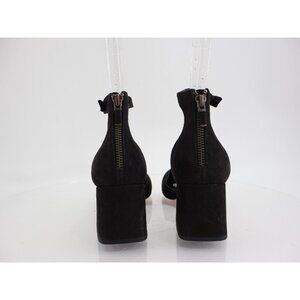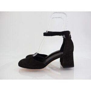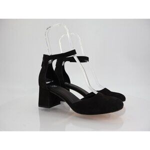 -Eileen Fisher Indi Ankle Strap Pumps Suede Black Leather Size 9 Block Heel