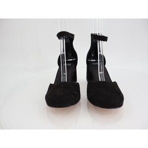 Eileen Fisher Indi Ankle Strap Pumps Suede Black Leather Size 9 Block Heel