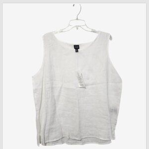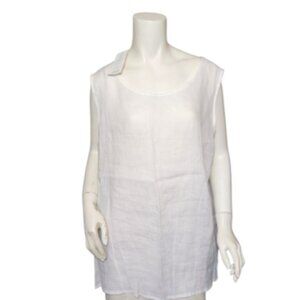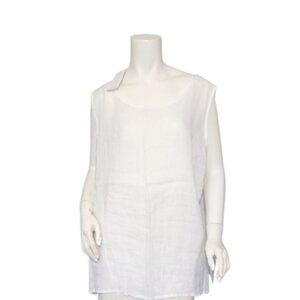 Eileen Fisher Irish Handkerchief Linen Sleeveless BAL-T7X White Tank Top Women's Plus Size 2X New With Tags at $78.00. Side slits at hem. Pullover 100% Linen tank top. Lagenlook. Camisole.