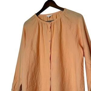 Eileen Fisher Irish Linen Button Front Tunic Top Lagenlook Minimalist Size Small