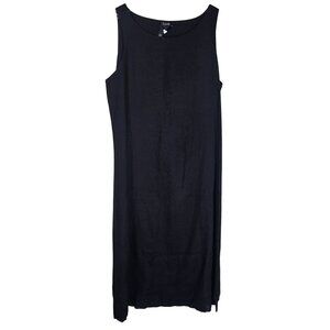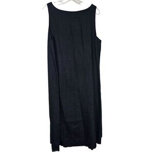 Eileen Fisher Irish Linen Double Layer Sleeveless Maxi Dress L Black Minimalist
