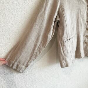 Eileen Fisher Irish Linen Jacket Size PL Lightweight Button Lagenlook Minimalist Natural Costal