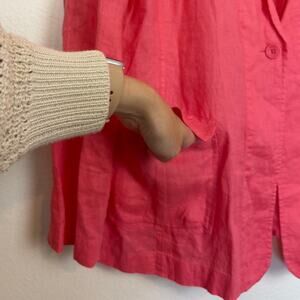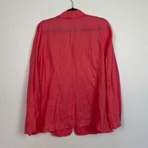 Eileen Fisher Irish Linen Relaxed Single Button Pocket Front Coral Blazer Large