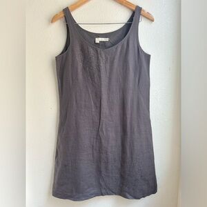 In excellent preowned condition. Like new! Experience comfort and style with this elegant gray sleeveless nightdress. Perfect for a restful night's sleep. Sleeveless. Boat neck. Sequin detail on the front. Mini dress. 100% Irish Linen