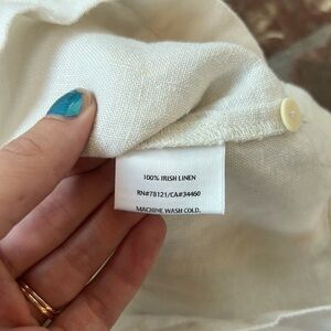 Features a side zipper and button closure. So cute and breathable! Good quality linen pants. Closet staple.