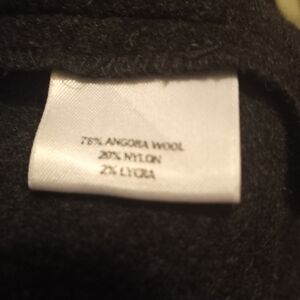 Eileen Fisher Charcoal Grey Soft Italian Fabric Angora Wool Blend Kimono Dolman Sleeve Slouchy Two Pocket Asian Knot Button Jacket, Oversized, Slouchy, Bohemian, Lagenlook, Artsy, Cozy, Comfy, Luxury, Quiet Luxury, Baggy, Loose Fit, Artsy, Boho