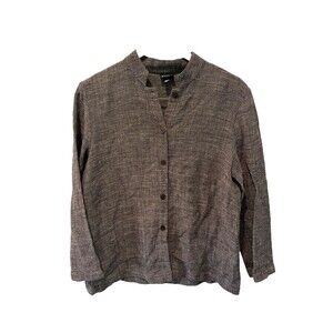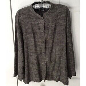 Eileen Fisher Italian Blend Brownish Gray Textured Linen jacket W/ Mandarin Collar Size S