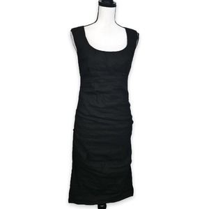 Eileen Fisher Italian Cotton Ruched Sheath Dress Size 4 Black Stretch Cocktail