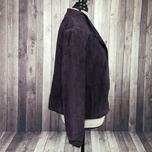 Eileen Fisher Italian Suede Open Front Jacket in Eggplant Purple Women's XS