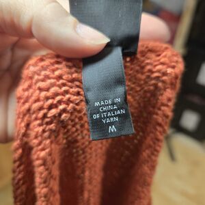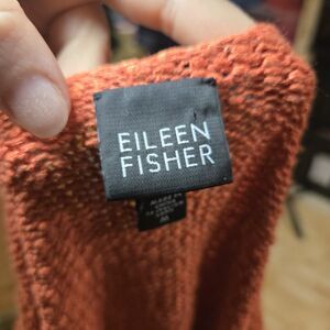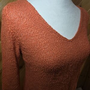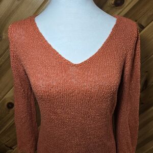 Eileen Fisher Italian Yarn Sweater Orange Size Medium V Neck Viscose Linen Knit