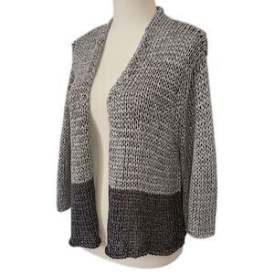 Eileen Fisher Italian Yarn Cardigan L Open Knit Quiet Luxury Old Money Capsule. Condition is pre-owned and EXCELLENT condition. Very lightweight and open Knit. Made of Italian Yarn. Very lightweight summer cardigan. No rips, tears, holes or discolorations. PLEASE SEE MEASUREMENTS.