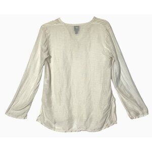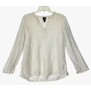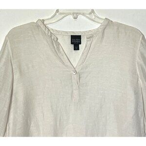 Eileen Fisher Ivory Linen Silk Long Sleeve Boho Tunic Top Blouse