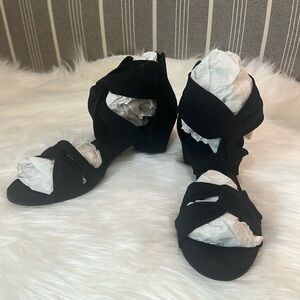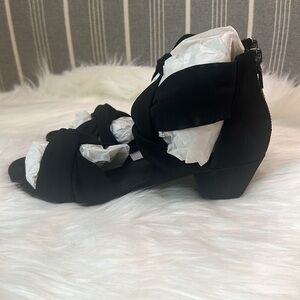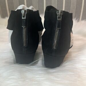 Twisted mesh detail with a zip back closure leather and suede footbed. Hexagon shaped heel gives just a little bit of height. Versatile enough to wear with anything from jeans or shorts to a dress.