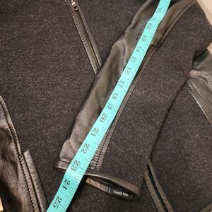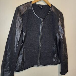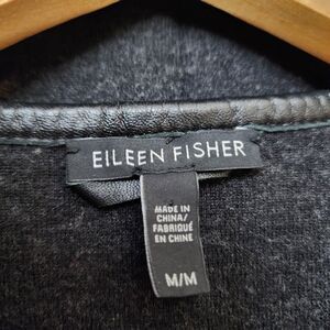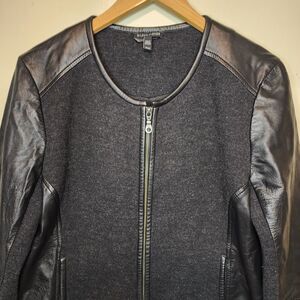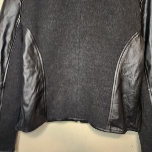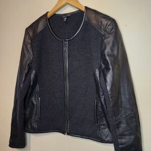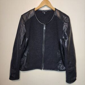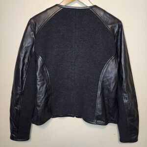 Eileen Fisher Jacket Black Leather Wool Womens Medium Silk Lined Full Zip