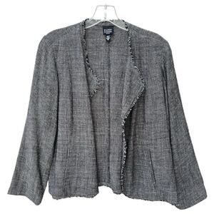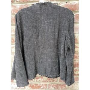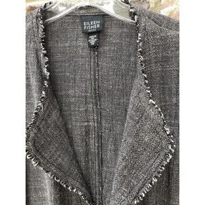 Eileen Fisher Jacket Blazer Petite Medium Black Heather Linen Blend Fringe
