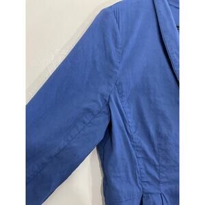 Eileen Fisher Jacket Minimalist Blazer Organic Linen Viscose Stretch M Scandi Quiet Luxe Office Career Coastal Old Money Preppy Academia Professor Event Party Church Blue.