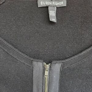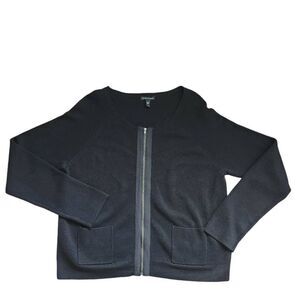 Eileen Fisher Jacket Sweater Cardigan Womens Large Silk Cotton Full Zip Black Career Wear Workwear