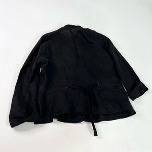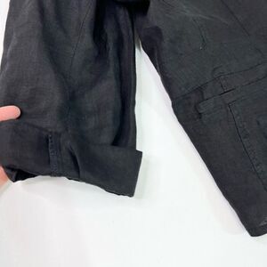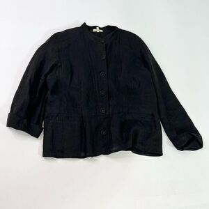 Eileen Fisher Jacket Womens Large Black Solid Linen Long-Sleeve Band Collar Blaz