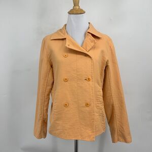 Eileen Fisher Jacket Womens PP Petite Goldfish Cotton Blend Double Breasted Coat
