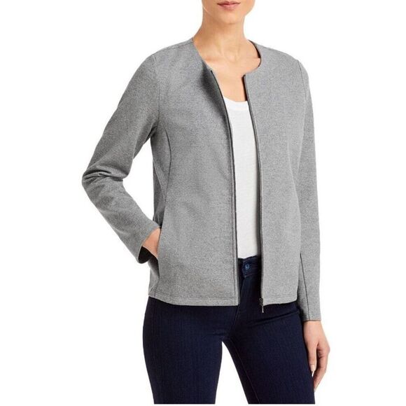 Eileen Fisher Jacket Womens Size Large Gray Round Neck Full Zip Casual Preppy