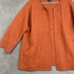 Eileen Fisher Jacket Womens Sz L Alpaca Wool Blend Open Front Pockets Rust