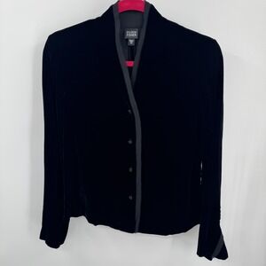 Eileen Fisher Jacket Womens XS Black Silk Blend Velvet Knot Buttons Feminine