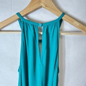 Eileen Fisher Jade Green-Blue Keyhole Halter-Style Belted Midi Dress Size XXS