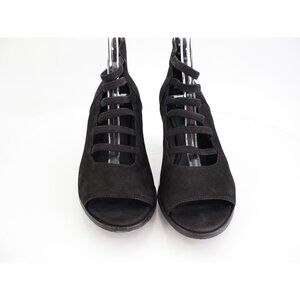 Eileen Fisher James Sandals Womens Size 10 Black Peep Toe Strappy Nubuck Leather