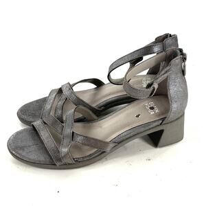 Eileen Fisher Jazzy Heel Sandals 6 NEW Gray Silver Leather Block Ankle Comfort