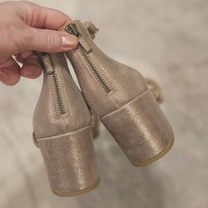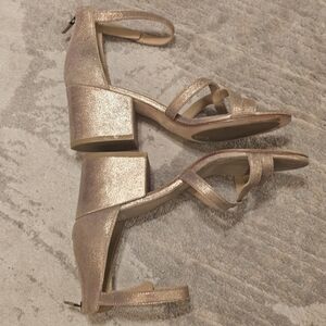 Eileen Fisher Jazzy Heel Sandals Gold Platinum Leather Block Strap 9