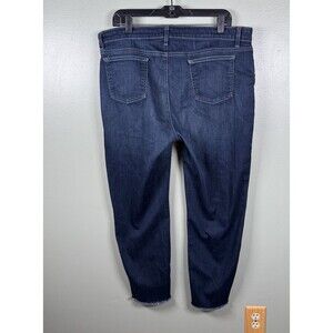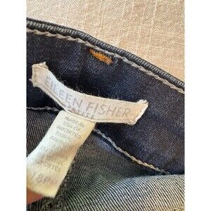 Eileen Fisher Jean SZ 18 Petite Tapered Raw Cut Hem Ankle Denim Dark Blue Wash
