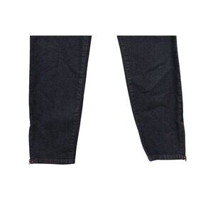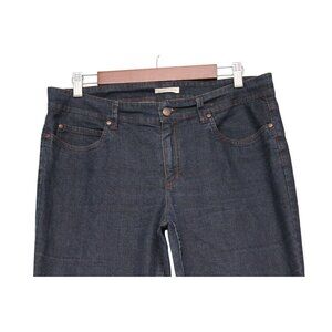 This is a pair of Eileen Fisher jeans in a size 12, made of organic cotton with spandex and elasterell-P, but there is minimal stretch. The jeans feature a solid dark blue denim fabric wash with a mid-rise fit and a skinny style, perfect for a preppy look. They have a zipper closure, ankle length, and zipper accents, offering both comfort and style. Made in the USA, these jeans are versatile for year-round wear, suitable for various themes like USA, bohemian, city, and preppy.